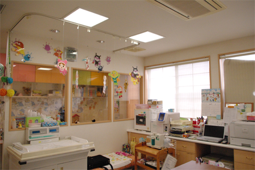 処置室壁の飾りつけは